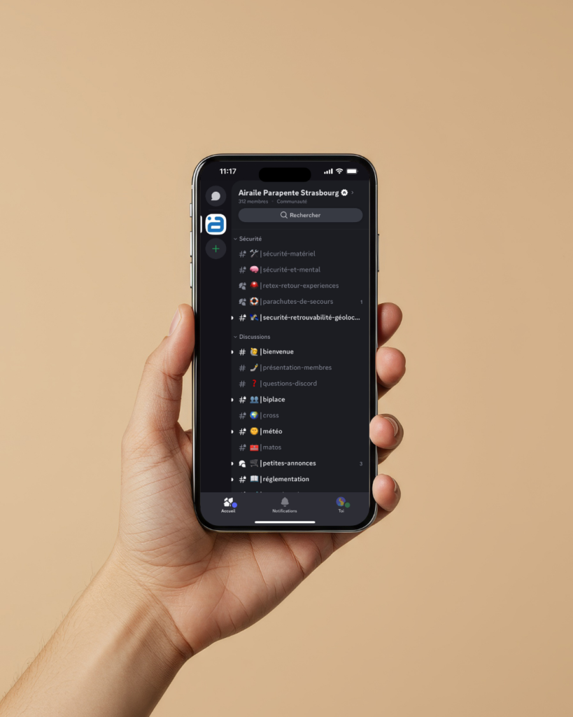 Sorties, infos vol, annonces, conseils et bonne ambiance : pour suivre toute la vie du club et de l’école Air Aile, c’est sur Discord que ça se passe.